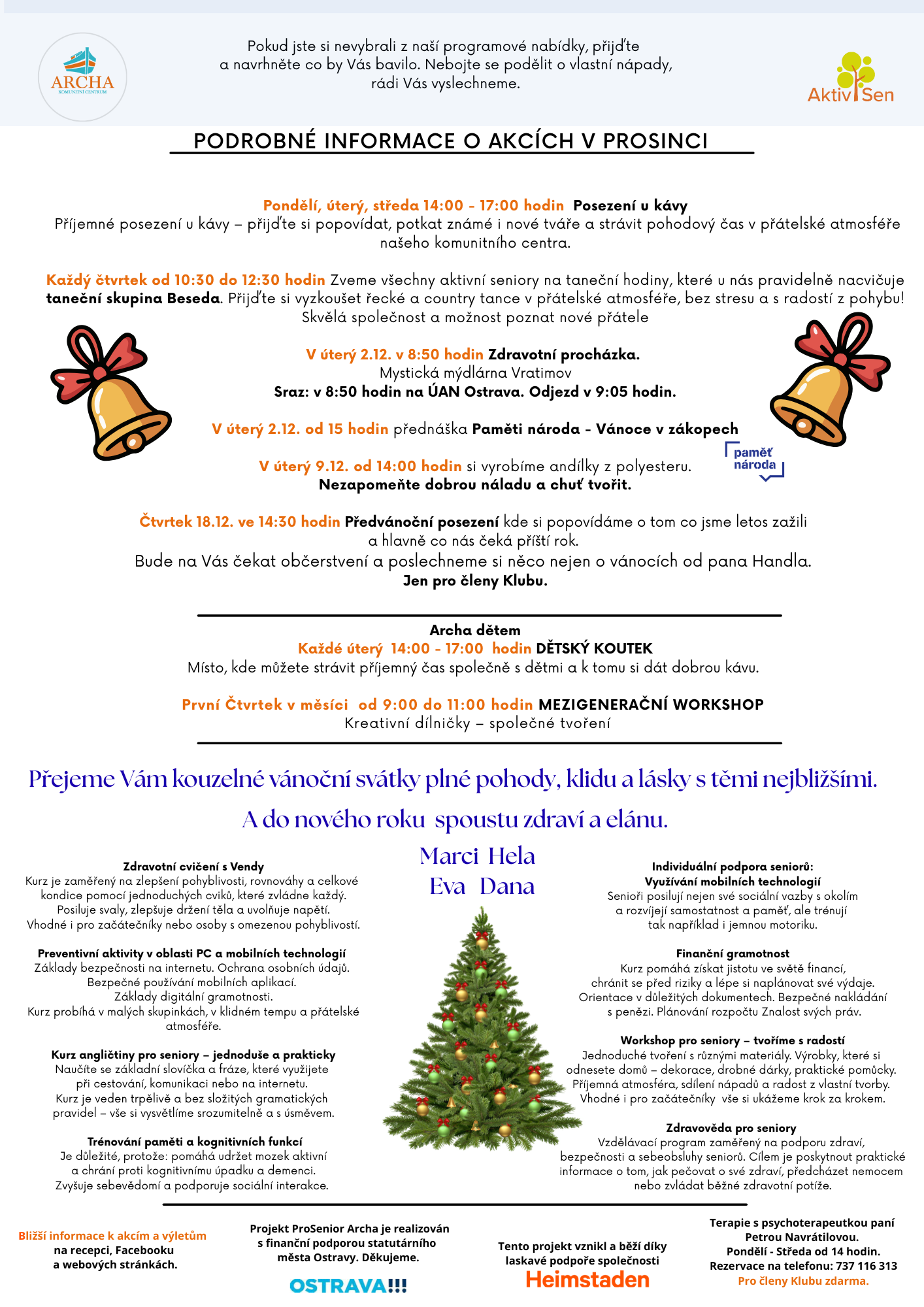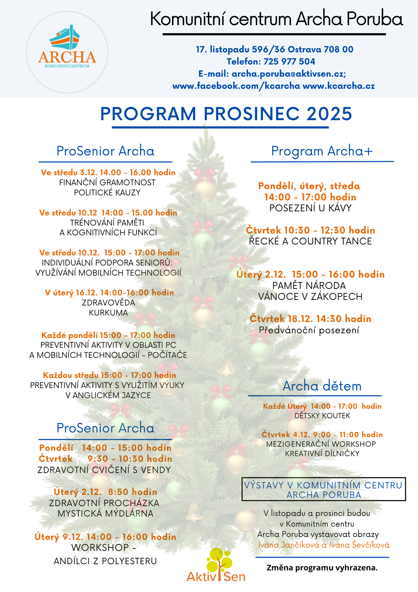 Komunitní centrum Archa slouží seniorům z Poruby, kteří nechtějí být jen doma, chtějí se učit novým věcem a setkávat se s přáteli. Podmínkou pro vstup do centra a využívání jeho prostor je členství v tzv. "Klubu přátel Archa". Tímto opatřením docílíme, že do centra budou docházet lidé, o nichž budeme mít přehled a zamezíme riziku krádeží. Členem se stáváte tehdy, když vypíšete jednoduchou přihlášku, která je ke stažení na našem webu v sekci přihláška, nebo ji obdržíte na recepci. Členové platí roční poplatek 100 Kč, ze kterého se následně platí např. sanitární prostředky.