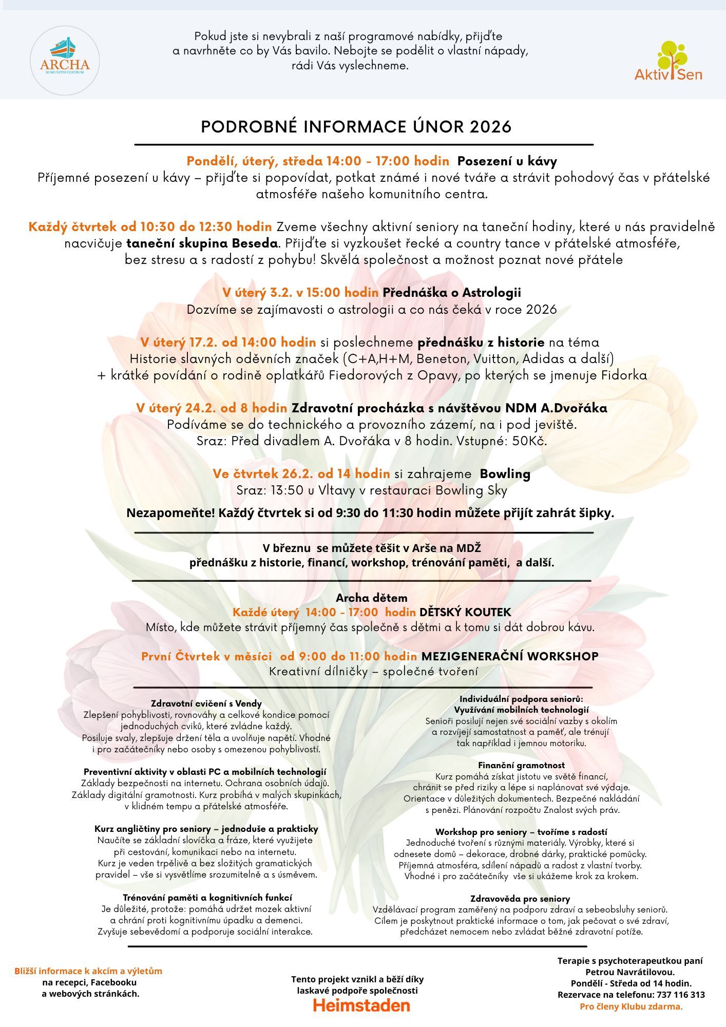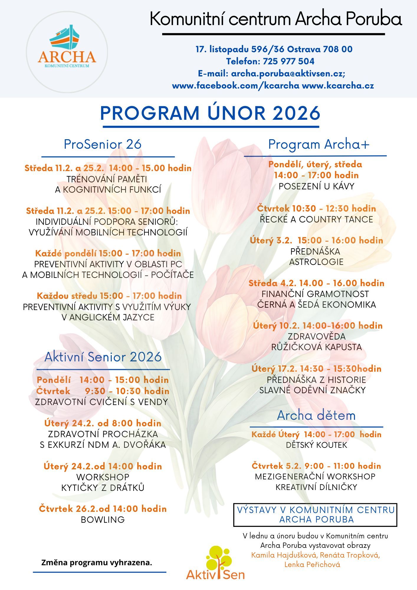 Komunitní centrum Archa slouží seniorům z Poruby, kteří nechtějí být jen doma, chtějí se učit novým věcem a setkávat se s přáteli. Podmínkou pro vstup do centra a využívání jeho prostor je členství v tzv. "Klubu přátel Archa". Tímto opatřením docílíme, že do centra budou docházet lidé, o nichž budeme mít přehled a zamezíme riziku krádeží. Členem se stáváte tehdy, když vypíšete jednoduchou přihlášku, která je ke stažení na našem webu v sekci přihláška, nebo ji obdržíte na recepci. Členové platí roční poplatek 100 Kč, ze kterého se následně platí např. sanitární prostředky.